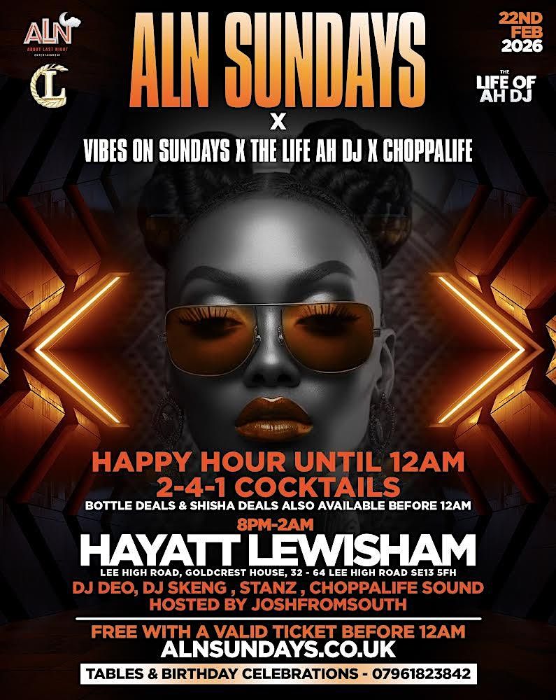 Sip, vibe, unwind. ALN Sundays brings luxury nightlife to Catford – where style meets sound. Enjoy live DJs, sax and drum performancesAbout this Event