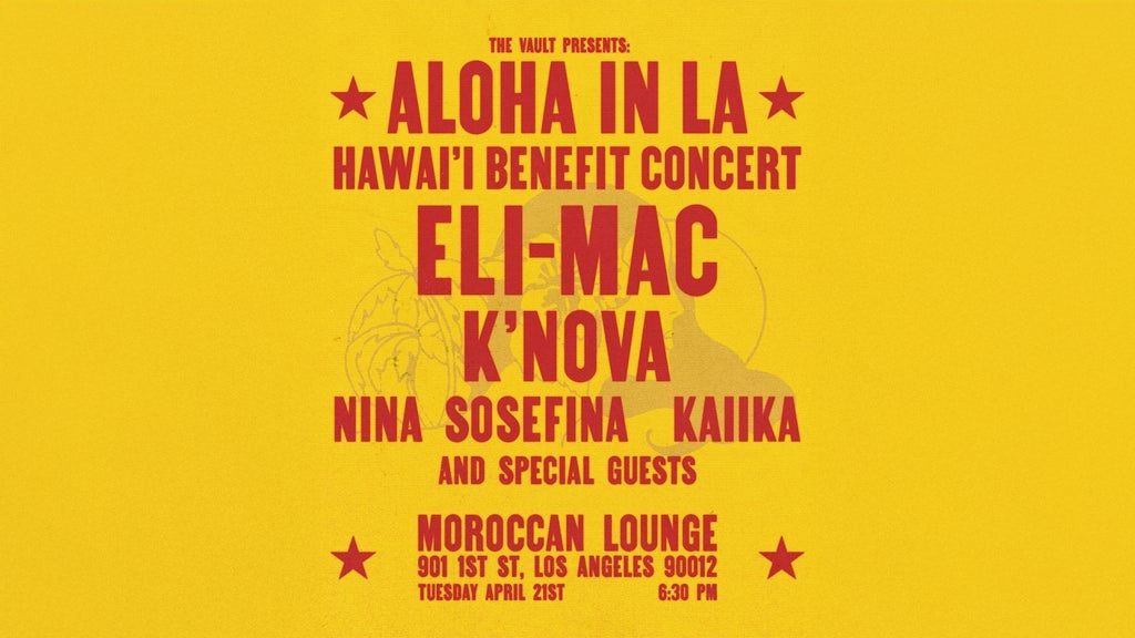 The Moroccan Lounge presents: Aloha in LA: Hawai'i Benefit Concert ft. Eli-Mac, K'Nova, Nina Sosefina, Kaiika & more [April 21, 2026 / Doors 6:30pm / $30 adv / $30 dos / 21+]