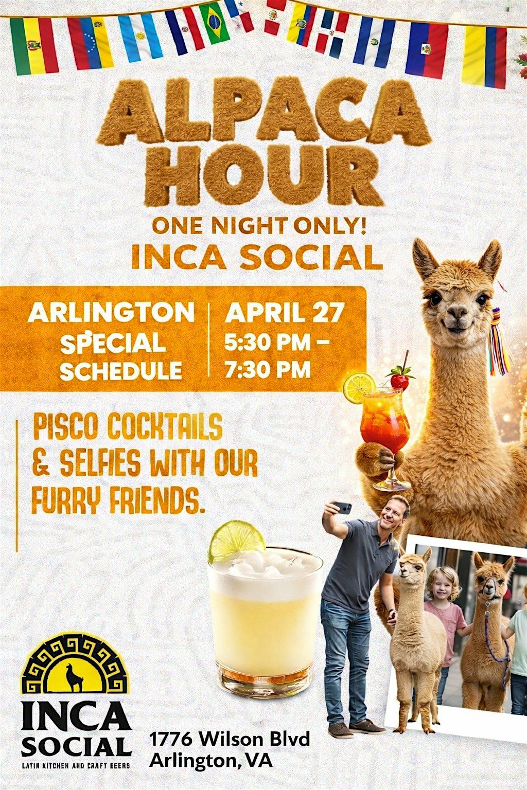 Join us at Inca Social Arlington for a one-of-a-kind Alpaca Hour where you can meet, interact, and take photos with real alpacas while enjoying great food, drinks, and a high-energy atmosphere.