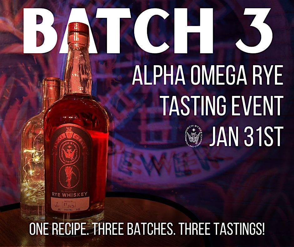 Celebrate our 1 year anniversary with a whiskey tasting experience! Be the first to try all three batches of Alpha Omega, our solera-style rye whiskey, led by Church Street Owner Jake Blackmon