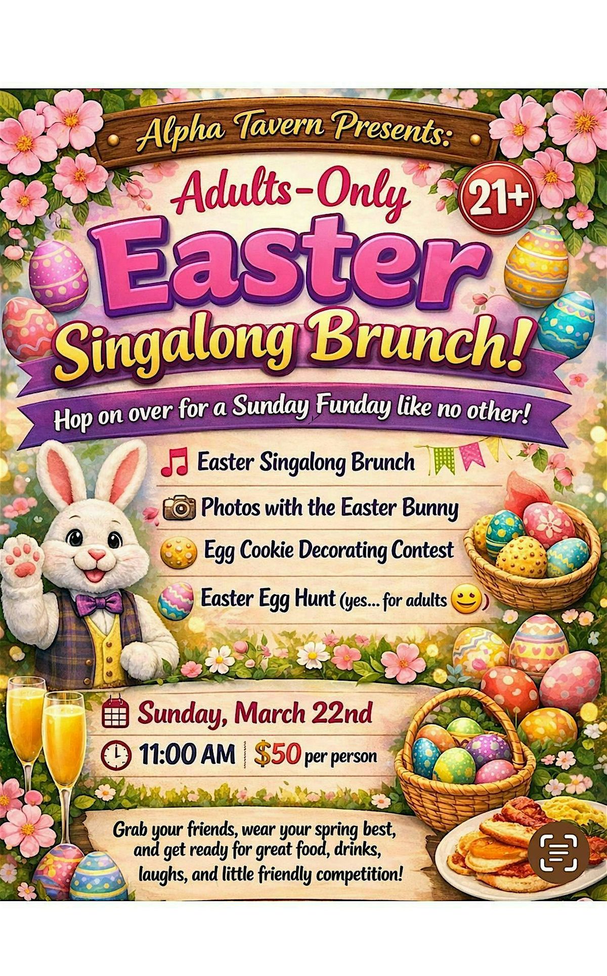 Join us at Alpha Tavern for a fun adults-only Easter brunch with all your favorite singalong tunes!