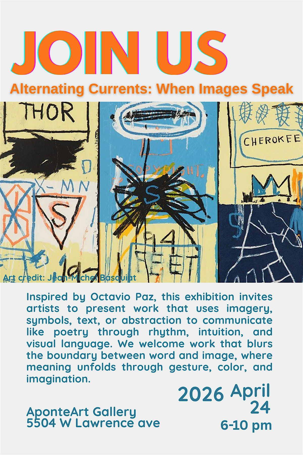 Alternating Currents: When Images Speak art exhibit is inspired by the poetic vision of Octavio Paz, inviting artists to use imagery, symbols, text, and abstraction to communicate like poetry—through rhythm, intuition, and visual language.