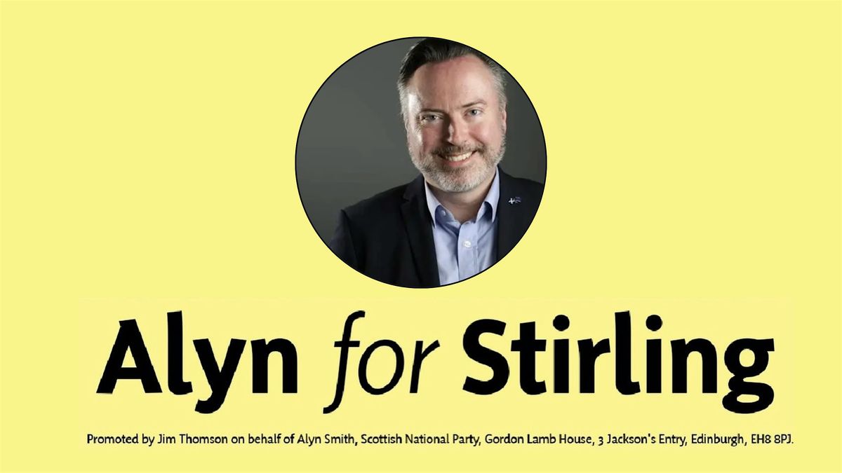 Join us at Creative Stirling for an evening of fun and entertainment for Alyn Smith, the SNP candidate for Stirling in the 2026 Holyrood election.