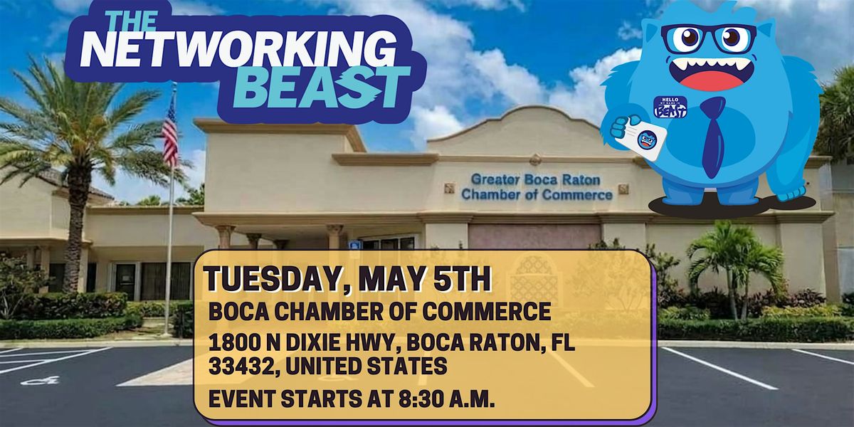 FREE Coffee & Light Breakfast The Networking Beast invites you! Network at the Boca Chamber of Commerce on the 1st, 2nd, 3rd Tuesday Monthly