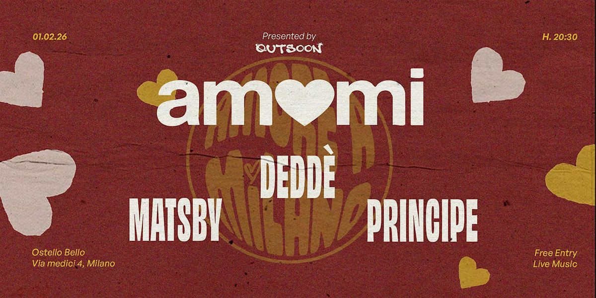siamo molto felici di presentarvi AMAMI il nuovo evento di Outsoon, uno Spin Off mensile che ci da modo di continuare a far suonare artisti emergenti in cui crediamo e rende più dolce l’attesa di AMORE A MILANO.