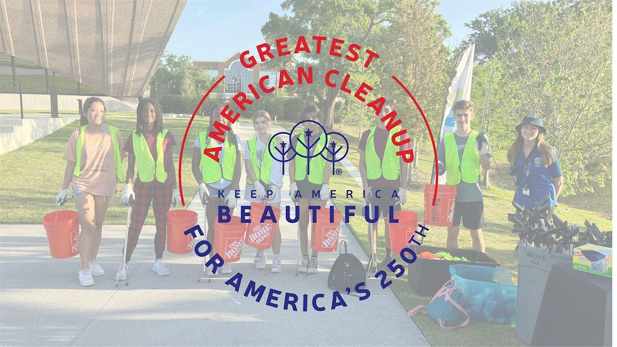 Celebrate Earth Month and honor America 250 by joining the nationwide Greatest American Cleanup, a signature initiative of Keep America Beautiful. As communities across the country prepare to commemorate 250 years of American history, this cleanup effort invites volunteers to take part in a collective national goal: removing 25 billion pieces of litter from parks, waterways, neighborhoods, and public spaces by July 4, 2026. Your participation helps create a cleaner, greener, and more beautiful environment for future generations.