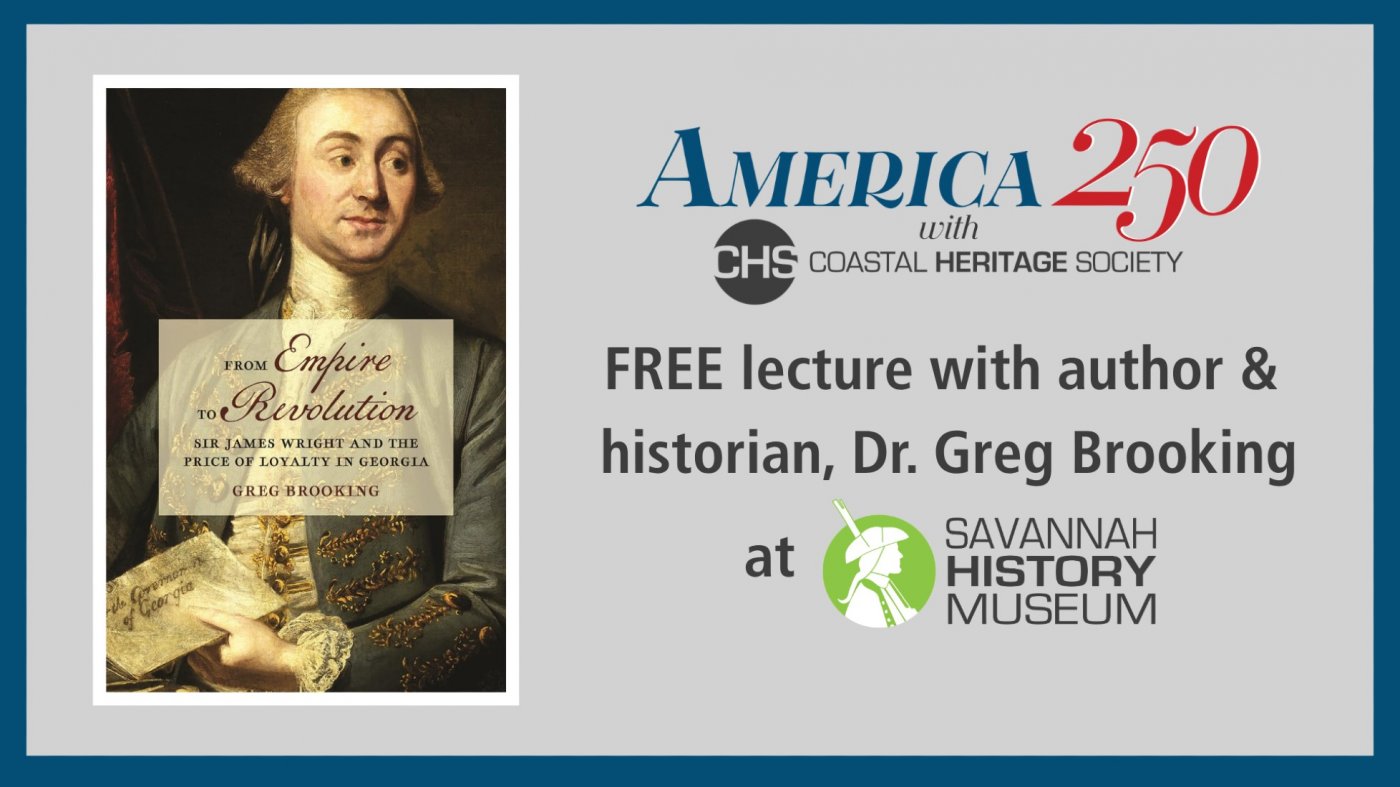 Coastal Heritage Society will host Dr. Greg Brooking at Savannah History Museum museum for an America 250 Lecture.