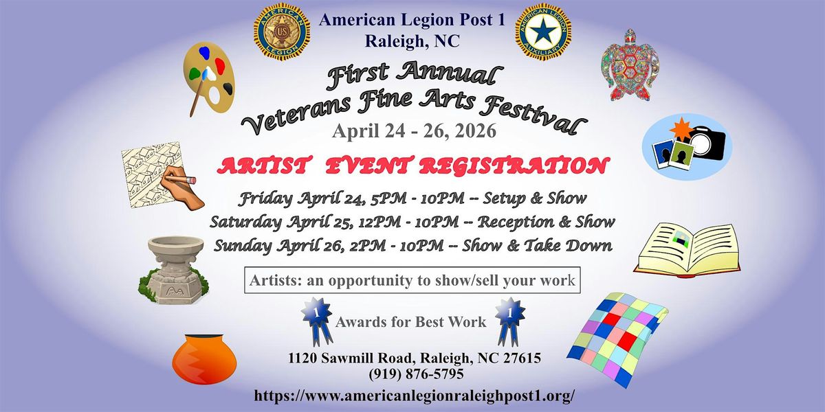 1. This art festival is open to ALL veteran artists (Navy, Marines, Army, Air Force, Space Force, Coast Guard, National Guard, and Reserves) from North Carolina. Note: this is NOT the American Legion National VA Art Contest.
