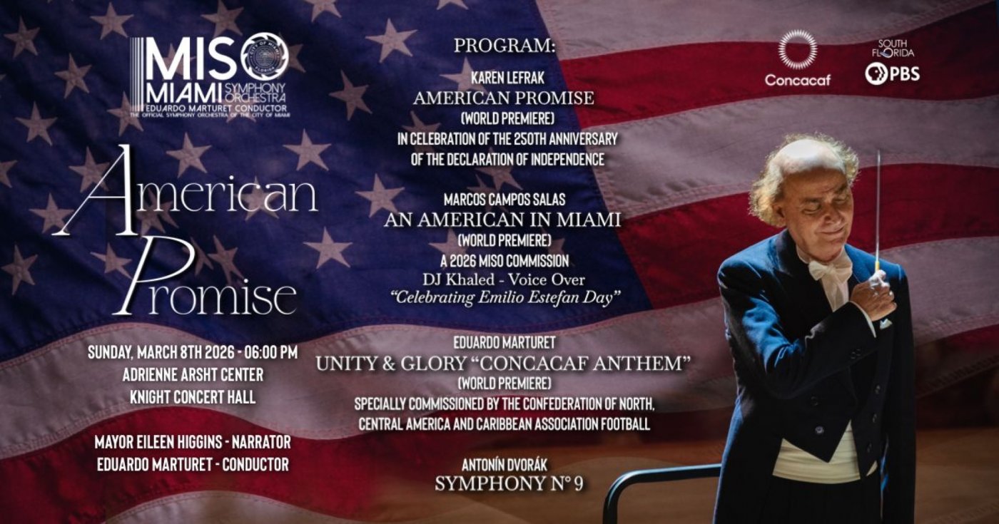 On March 8, the Miami Symphony Orchestra presents American Promise at the Knight Concert Hall, inspired by the moving work of composer Karen LeFrak, in celebration of the 250th anniversary of the Declaration of Independence. Led by Maestro Eduardo Marturet, this concert celebrates the spirit of American creativity through a dynamic blend of new compositions and timeless orchestral works, capturing the optimism, diversity, and evolving identity of the nation’s musical voice.