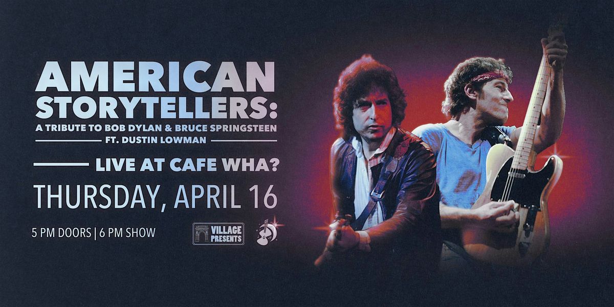 In American Storytellers: Bob Dylan & Bruce Springsteen, singer/songwriter Dustin Lowman performs a wide array of the two trouabours’ material, from classics to deep cuts, reflecting all the while on where the songs came from, and what made them such powerful responses to crisis. As the most powerful Americans abandon American values, weaponize cynicism, and propagate misinformation, Dylan’s and Springsteen’s music reminds us where our faith should take root: American people, their stories, their minds, and their hearts.