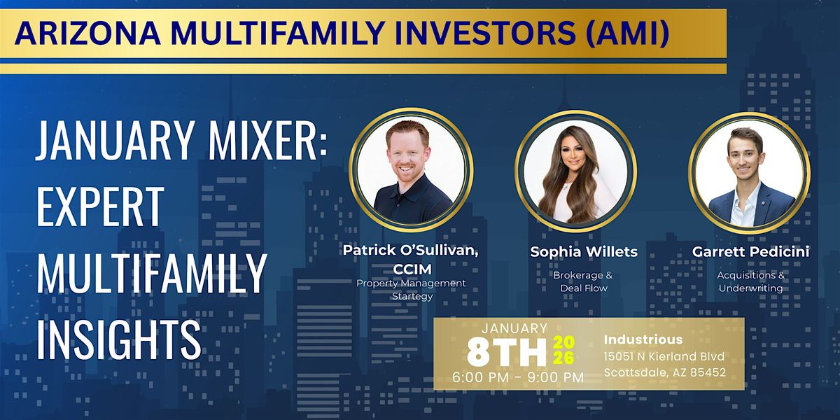 Join us for the official Arizona MULTIfamily Investors (AMI) Networking Mixer, featuring expert insights on the 2026 Forecast & Off-Market Opportunities.