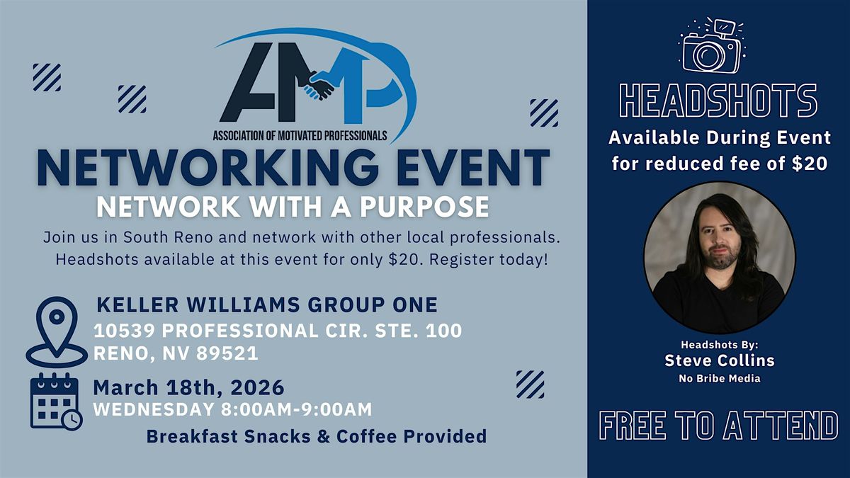 AMP or ‘Association of Motivated Professionals’ is a networking group in Reno that meets bi-weekly. Our membership allows for one representative per industry to allow for consistent referrals between each other. We are looking to grow, so please ask one of our members or our president, Garrett ([email protected]), how to join.
