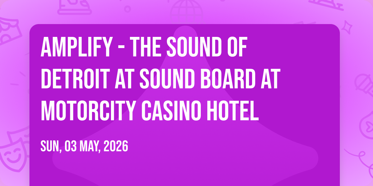 ✨ Enter a world of endless possibilities at Amplify - The Sound of Detroit at Sound Board at MotorCity Casino Hotel, where every moment tells a story! 🏛️ The stunning Sound Board at MotorCity Casino Hotel in vibrant Detroit, MI transforms into a realm of wonder on May 3rd, 2026 at 04:00 PM. 🌟 They have crafted an experience that goes beyond the ordinary, combining elements of surprise, delight, and pure entertainment. Every detail has been thoughtfully considered to ensure your journey with us is nothing short of extraordinary. 🎯 Join fellow adventure seekers and memory makers in this celebration of imagination and innovation. 🎊 Reserve your spot today and be part of something truly special!