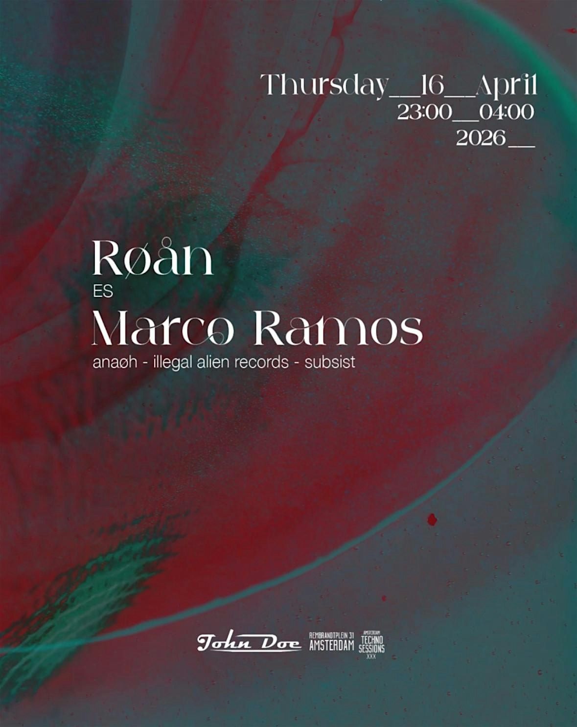 Tonight! Thursday, 16th of April 2026, we´re back to John Doe for our weekly Techno rendezvous. And for this one, we invited the Spanish, Amsterdam-based, Røån to headline the night alongside Marco Ramos.