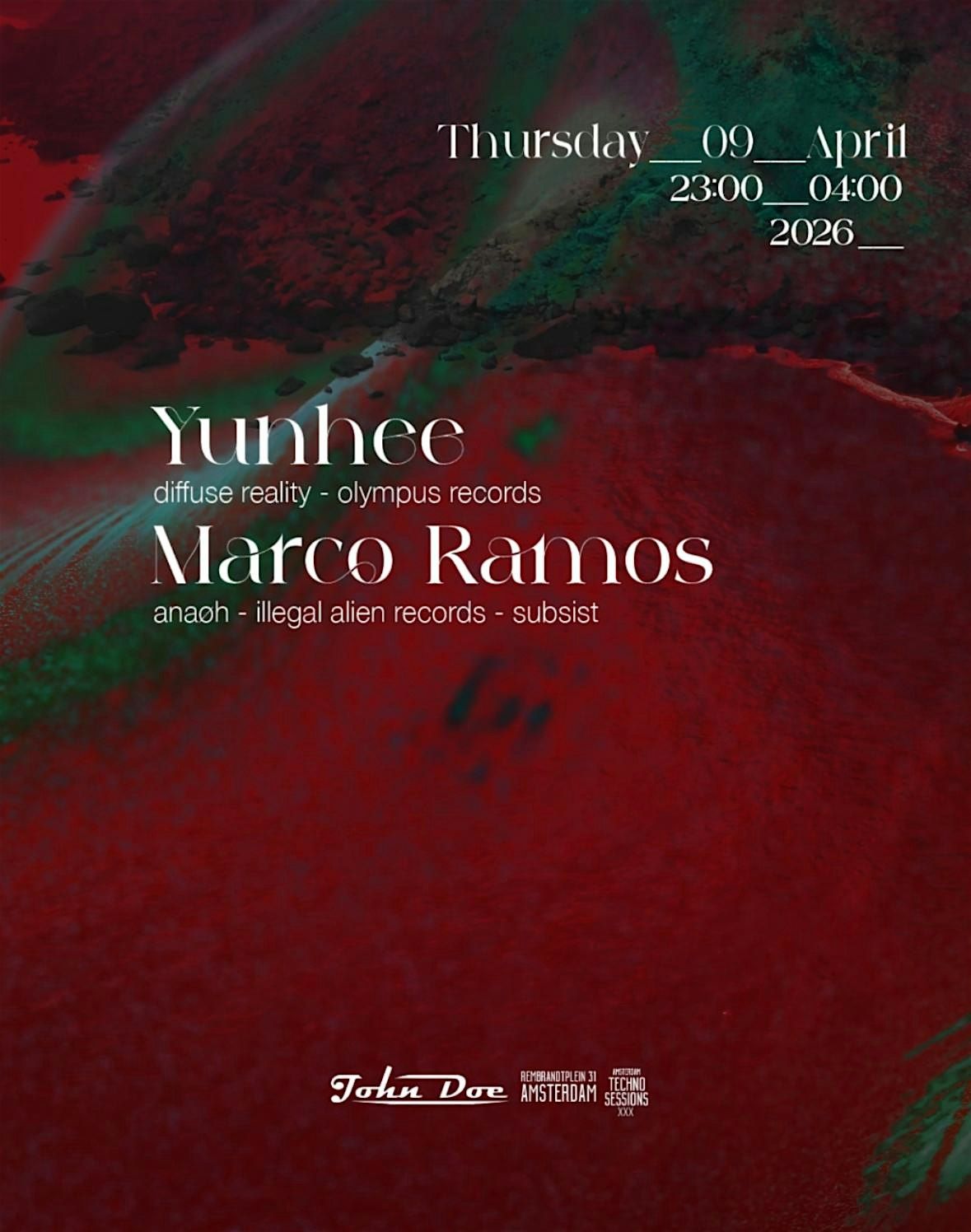 Tonight! Thursday, 09th April 2026, we are back to @clubjohndoe for another special event. Featuring: @yunhee_adsr & @marcoramoslive Expect 5 hours of deep, driving Techno, hypnotic grooves, and some epic B2B energy.