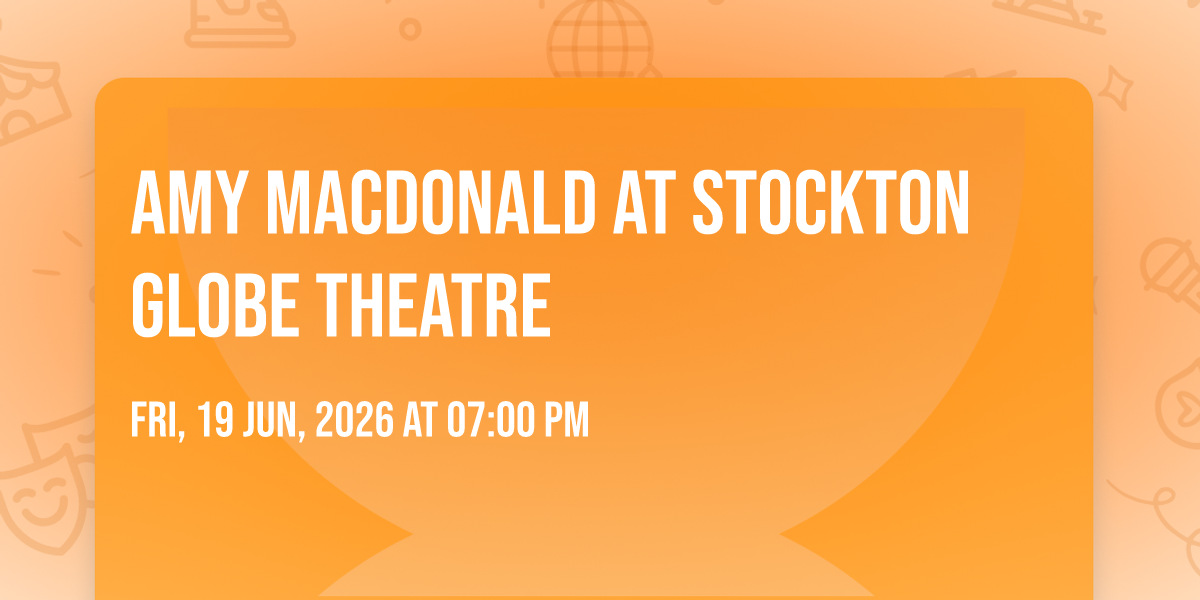 🌟 Be part of history at Amy Macdonald at Stockton Globe Theatre, an extraordinary gathering that will captivate your imagination! 🏛️ The prestigious Stockton Globe Theatre in Stockton-on-Tees, EN sets the stage for an unforgettable experience on June 19th, 2026 at 07:00 PM. ✨ They are bringing together the finest elements of entertainment and innovation to create moments that will take your breath away. From the moment you arrive, you'll be immersed in an atmosphere of wonder and excitement. 🎯 This carefully planned event ensures every guest experiences something truly special. 🎊 Early booking is recommended for this must-attend event of the season!