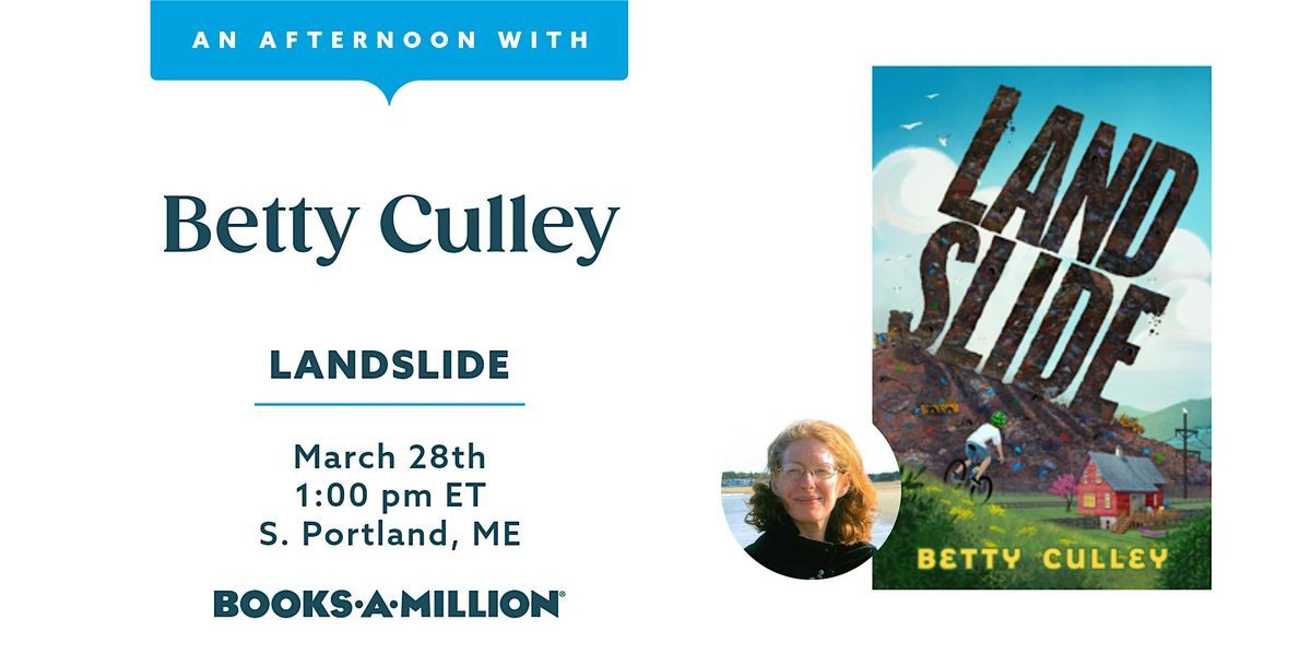 Come hang out in person and spend an afternoon with the wonderful Betty Culley. She will be signing, and personalizing, copies of her newest book Landslide! It's the perfect chance to connect, chat, and enjoy some great company. Don’t miss out on this fun book signing event with a Maine author! See you there!