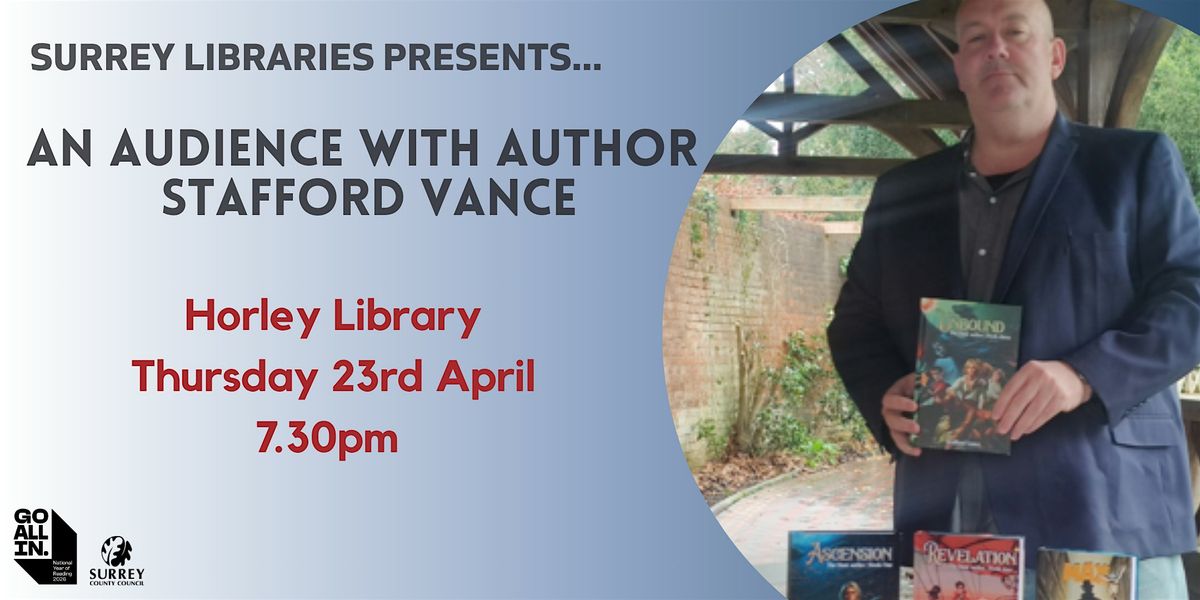 To celebrate Horley Arts Festival, join us for a captivating evening with epic fantasy author Stafford Vance as he brings the world of The Dust Series to life.