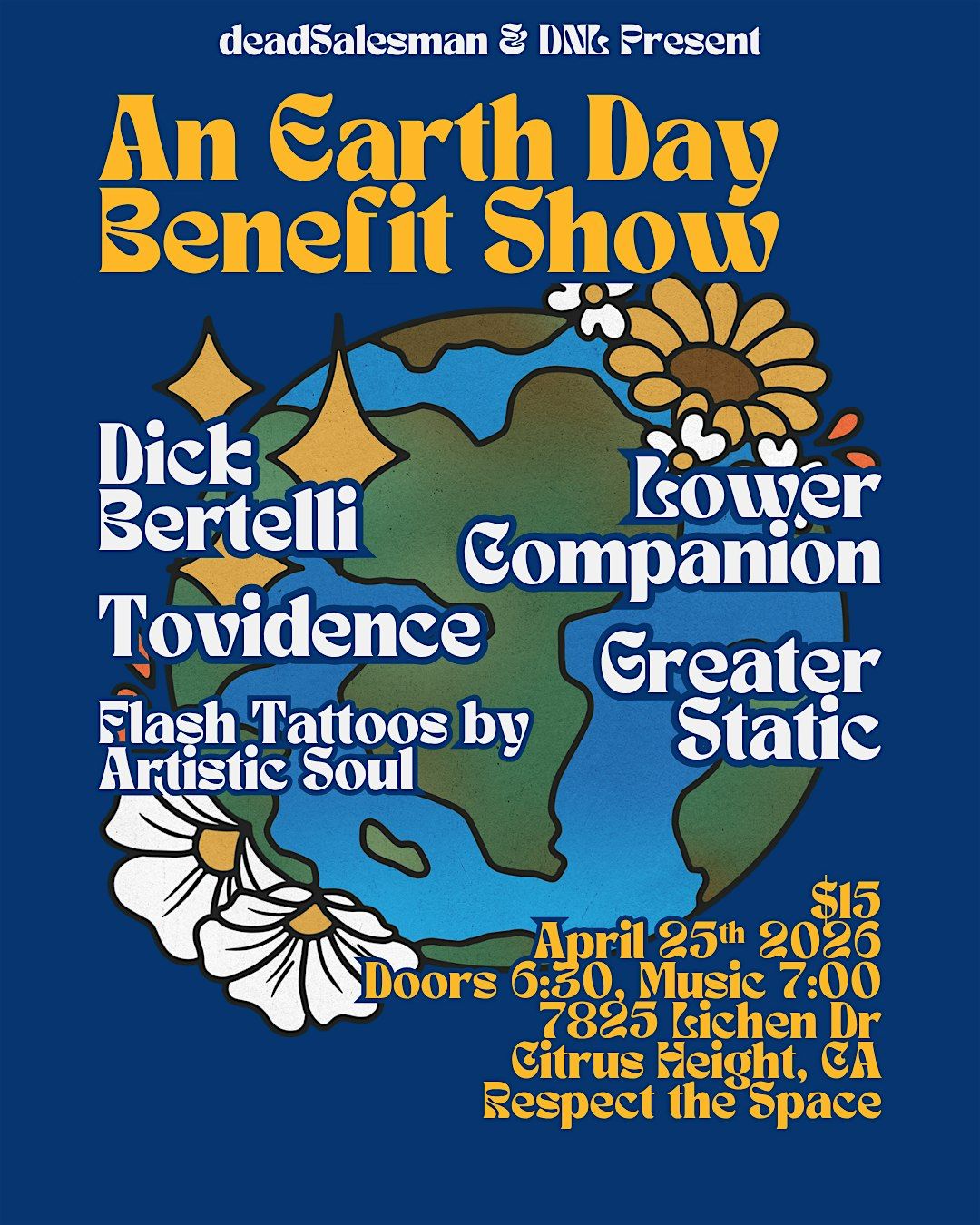 Dick Bertelli, Lower Companion, Tovidence, & Greater Static. All proceeds split between Save the American River Association and DNL.