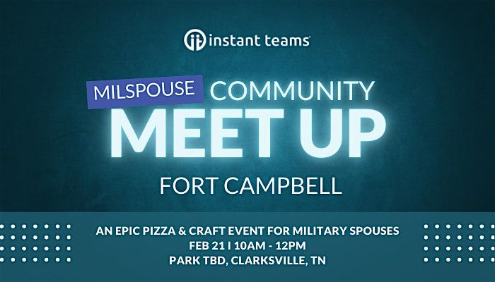 Hey Milspouses! Come join us for a fun and casual in-person meet up on Fort Campbell. It's the perfect chance to do a fun craft and chat over a slice of pizza (thanks to Instant Teams) and connect with fellow military spouses in the community. Whether you're new to the area or a seasoned pro, this chill gathering is all about sharing stories, making friends, and enjoying some quality time together. Plus, if you're looking for remote jobs, Instant Teams has you covered! Don't miss out on the fun and great company!