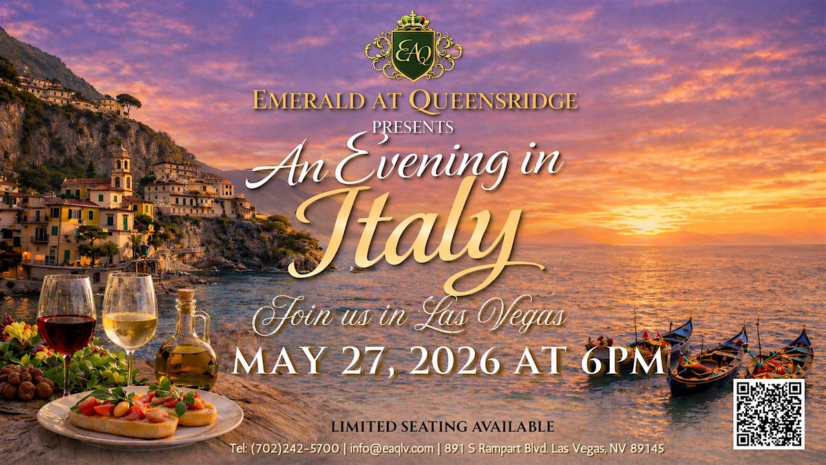 Join us at Emerald at Queensridge for an intimate wine dinner experience featuring a thoughtfully curated multi-course dining experience, expertly paired with exceptional Italian wines. Each course is designed to capture the rich flavors, warmth, and romance of Italy for an unforgettable evening.