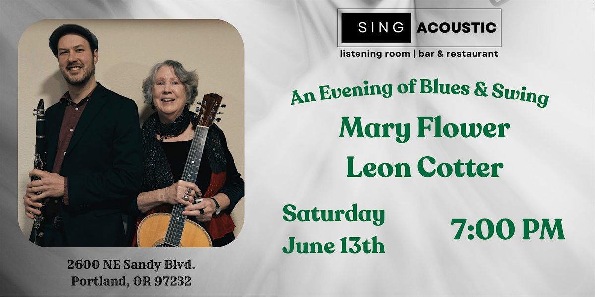 Leon Cotter A masterful multi-instrumentalist, brings a rich, melodic depth to the stage on clarinet and saxophone. Known for his work across jazz, folk, and swing genres, Leon’s phrasing provides the perfect counterpoint to Mary’s rhythmic guitar lines, creating a sound that feels both nostalgic and refreshingly contemporary.