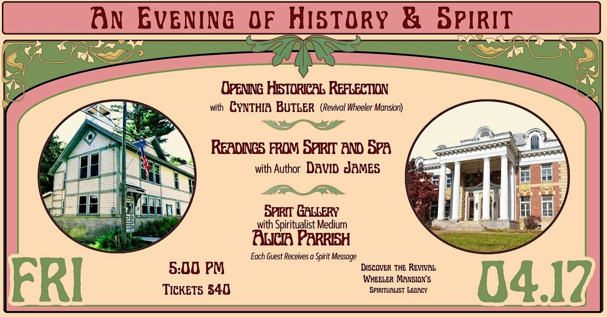 Presented by The National Spiritual Alliance and hosted at the Revival Wheeler Mansion, this special program brings together history, literature, and living Spiritualist tradition in the very setting where these stories began.
