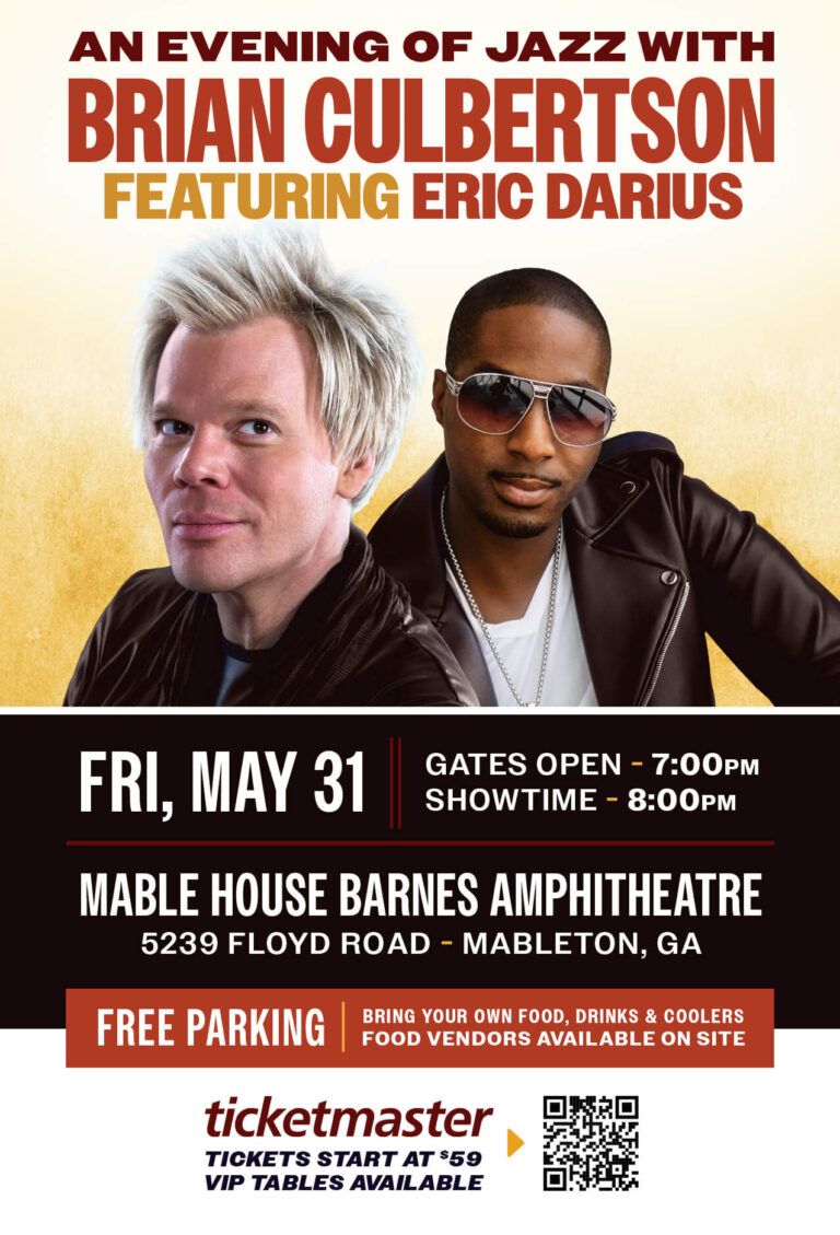 🌟 Be part of history at An Evening of Jazz: Brian Culbertson and Eric Darius at Mable House Amphitheatre, an extraordinary gathering that will captivate your imagination! 🏛️ The prestigious Mable House Amphitheatre in Mableton, GA sets the stage for an unforgettable experience on August 15th, 2026 at 07:00 PM. ✨ They are bringing together the finest elements of entertainment and innovation to create moments that will take your breath away. From the moment you arrive, you'll be immersed in an atmosphere of wonder and excitement. 🎯 This carefully planned event ensures every guest experiences something truly special. 🎊 Early booking is recommended for this must-attend event of the season!