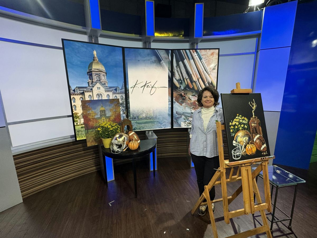 The evening will feature live painting by renowned California-based artist Kathleen Keifer, whose work is celebrated internationally and admired for capturing the rich history and golden spirit of Notre Dame. We are honored to host her at the River House for this special weekend.