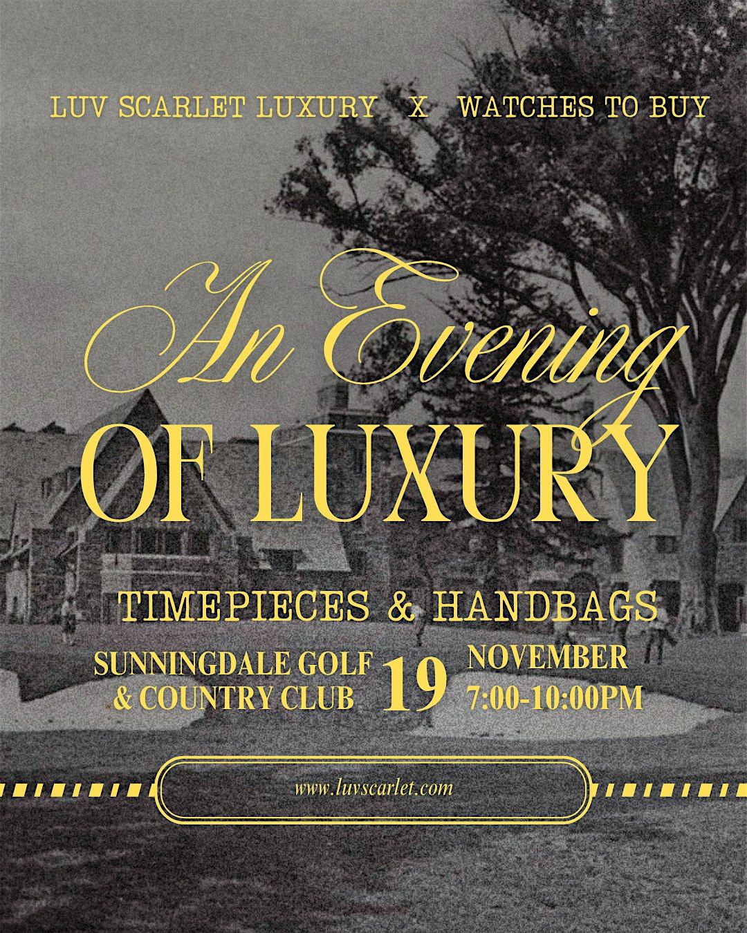 Come spend a stylish evening with us at Sunningdale Golf & Country Club! We’re bringing together the best of both worlds—handbags and watches—for a night that’s all about luxury, community, and great conversation.