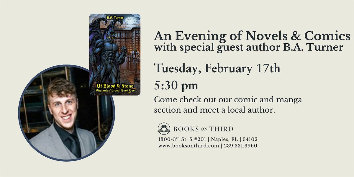 B.A. Turner will share insight into his creative process, discuss adapting stories across mediums, and touch on the distinctions between comics and manga for curious readers. With a special focus on novel writing—his readily available works—this event is perfect for fans of speculative fiction, graphic storytelling, and anyone interested in how stories come to life across formats.