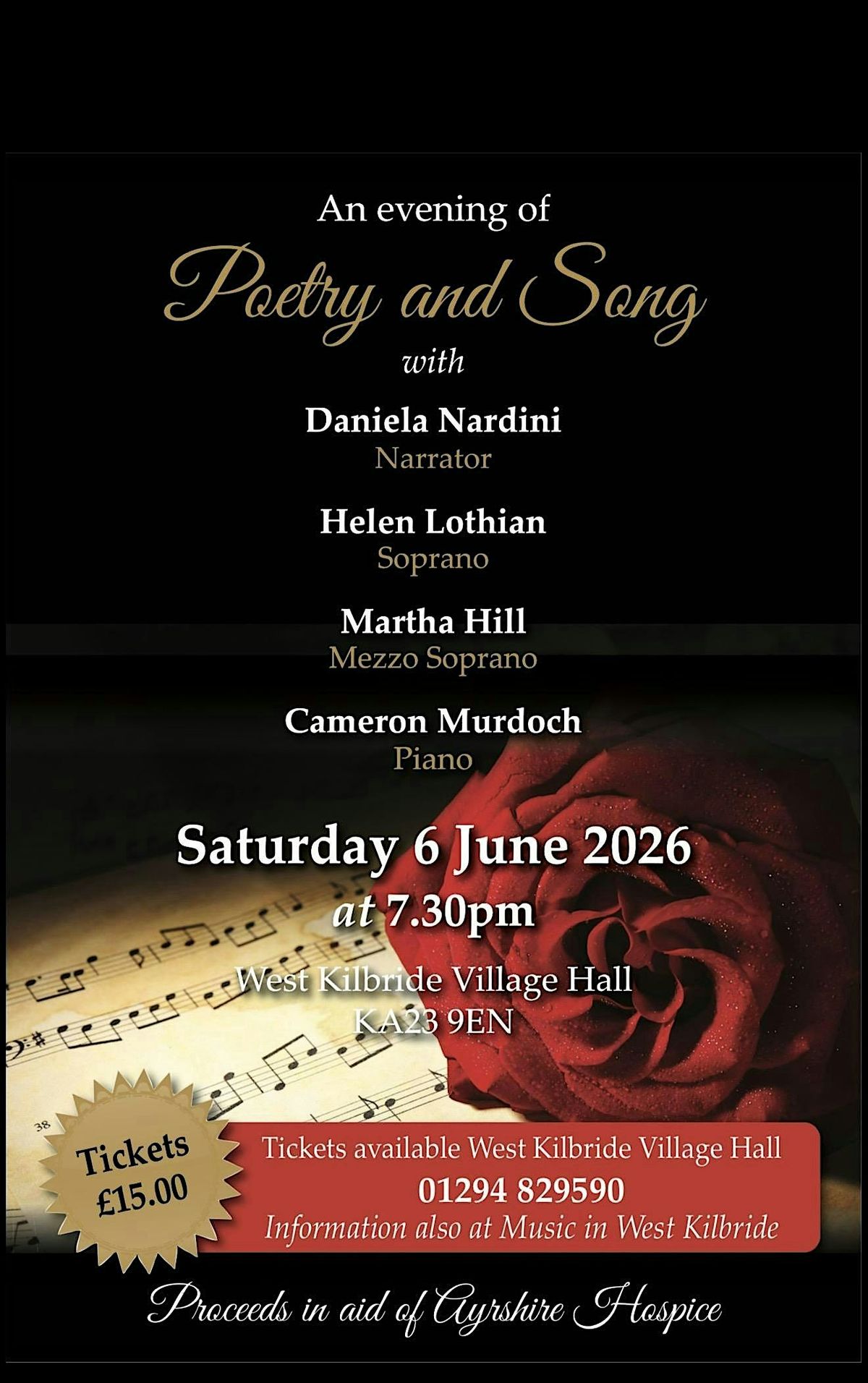 An Evening of Poetry and Song with Daniela Nardini (Narrator ) Helen Lothian (Soprano ) Martha Hill (Mezzo Soprano ) and Cameron Murdoch (Accompanist )