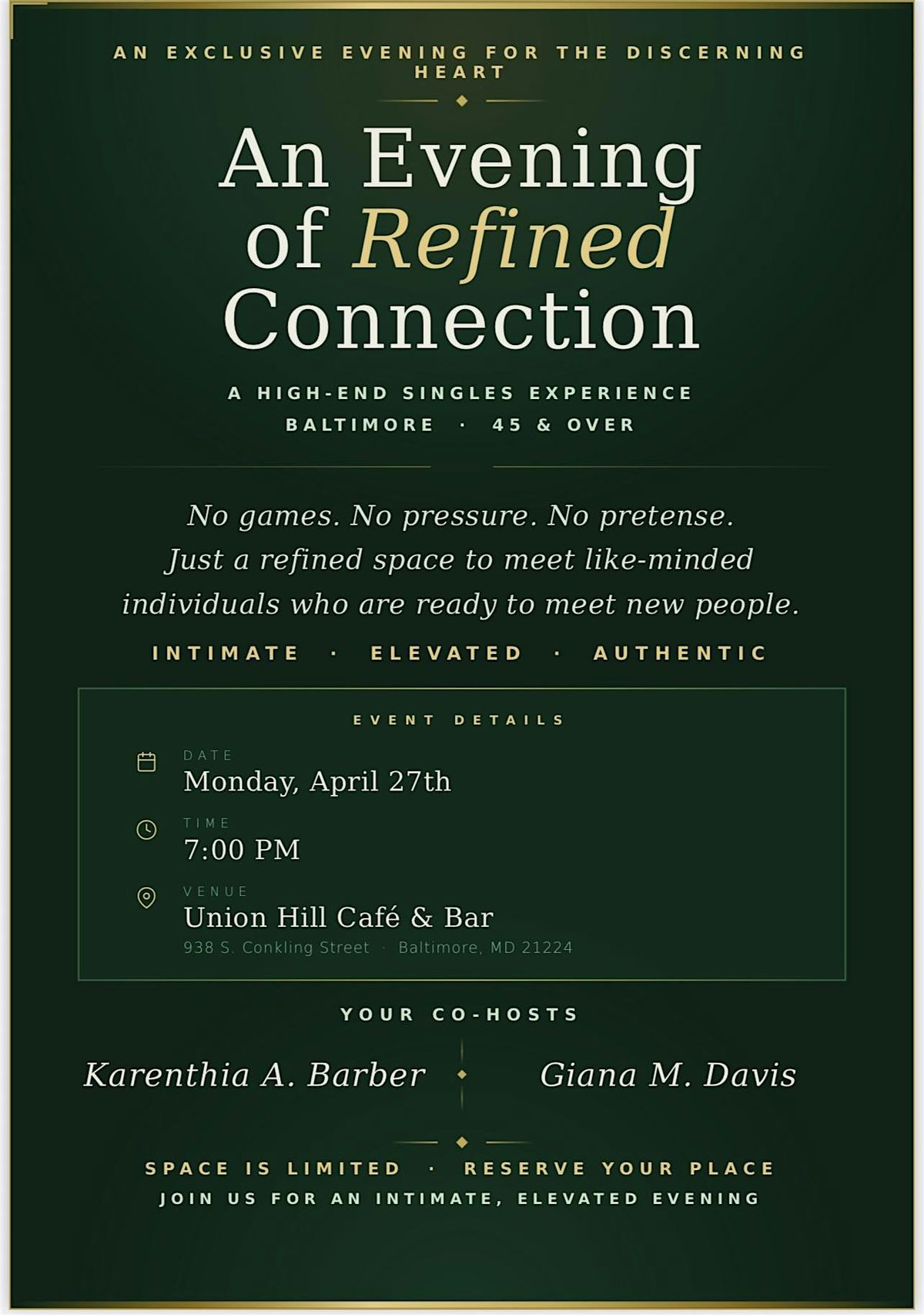 Just a thoughtfully curated space where accomplished, emotionally aware individuals come together for real conversation, authentic connection, and intentional engagement.