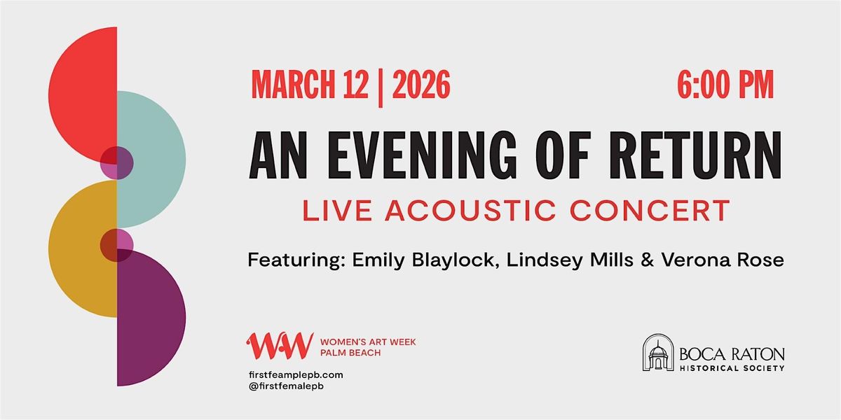 In celebration of Women’s History Month, the and invite you to An Evening of Return — a soulful, intimate acoustic concert held inside the historic walls of The Schmidt Boca Raton History Museum.