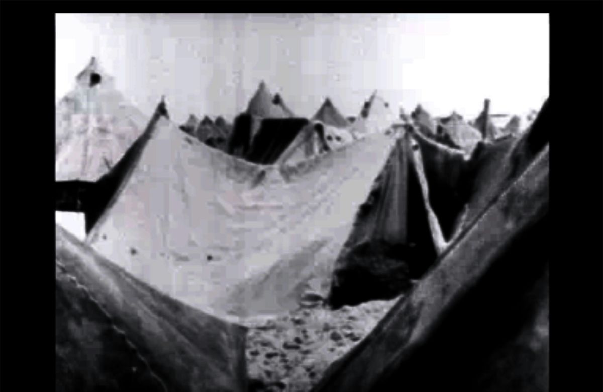 This image from our first film could have been taken in Gaza today but is in fact a screenshot from a documentary film called Sands of Sorrow made in 1950 by the Council for the Relief of Palestine Arab Refugees. The film was created to show ' the squalid living conditions in refugee camps, starving children, and emphasises the hopeless condition of the refugees.' A byline that, tragically, could have equally been written today.
