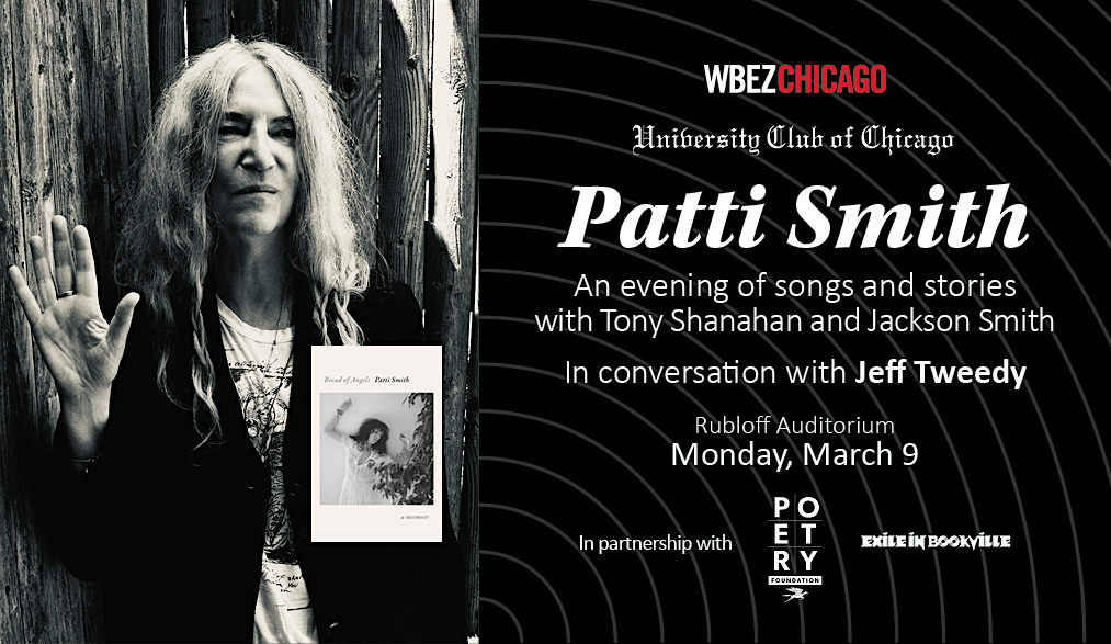 Join us for an unforgettable evening with poet, writer, and performer Patti Smith (Just Kids) as she presents her radiant memoir, Bread of Angels — an intimate and poetic journey through her remarkable life.