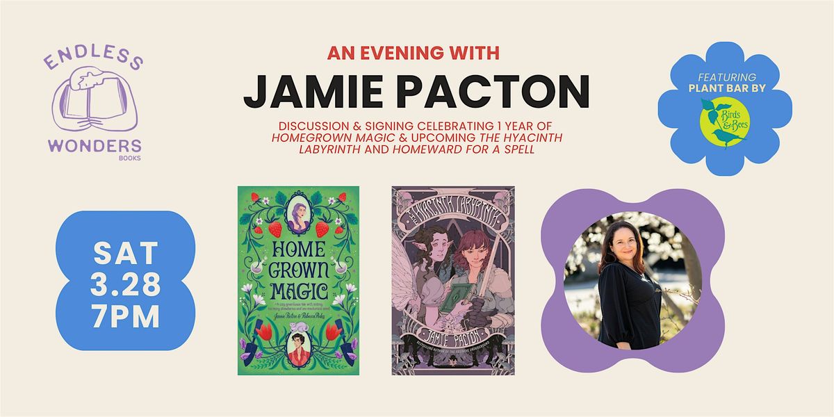 Join us for an evening celebrating the one year anniversary of Homegrown Magic being out in the world and the upcoming release of The Hyacinth Labyrinth (June 2, 2026) and Homeward for a Spell (August 18, 2026). We will have a Q&A with Jamie followed by a signing. You will have the opportunity to buy Jamie's books here to get signed and also preorder The Hyacinth Labyrinth and Homeward for a Spell.