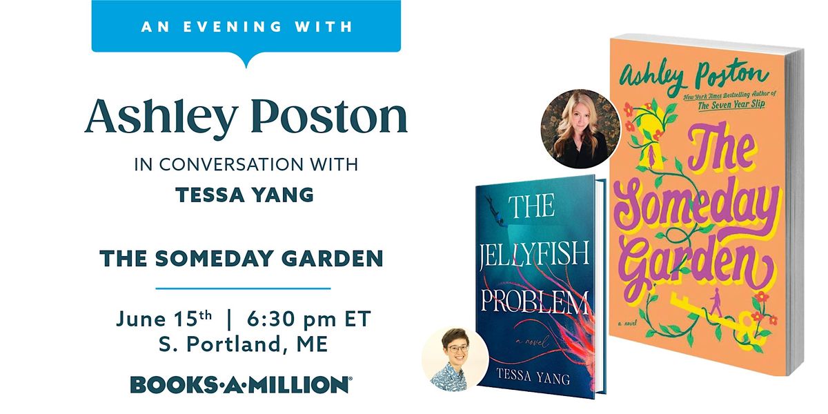 The evening will feature a lively moderated conversation between Ashley and debut author Tessa Yang (The Jellyfish Problem), offering behind-the-scenes insight, writing inspiration, and exclusive details about The Someday Garden. The conversation will be followed by an audience Q&A, book signing, and meet-and-greet with both authors!