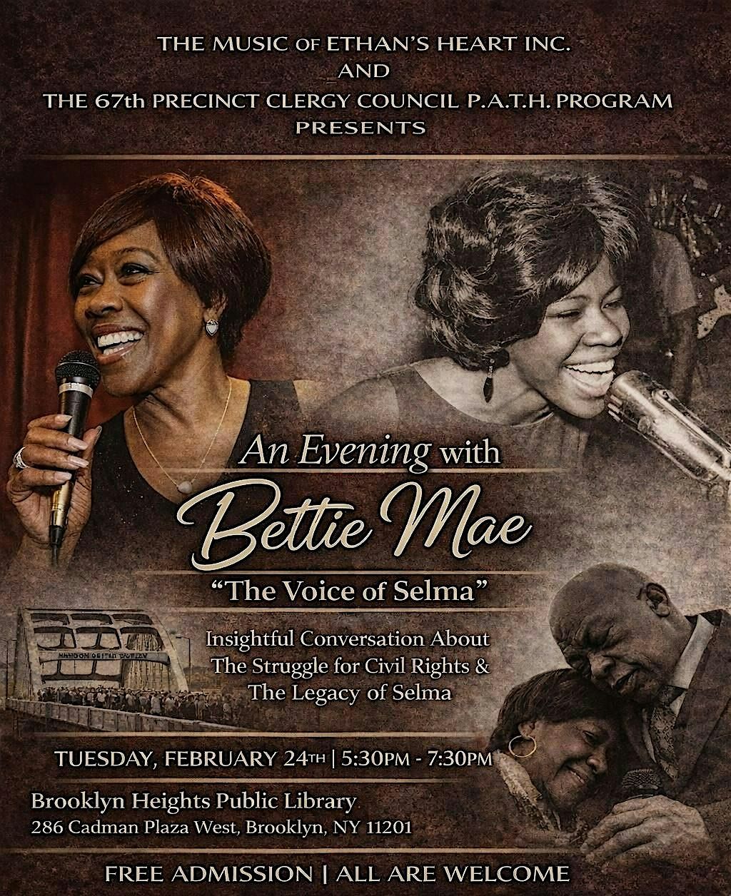 Get ready to be inspired by Bettie Mae as she shares her powerful story and experiences during this special evening event.