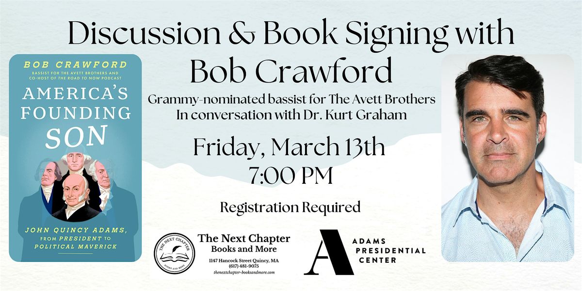 Join us for an evening with Bob Crawford, in conversation with Dr. Kurt Graham of the Adams Presidential Center, as he discusses his new book, America’s Founding Son: John Quincy Adams, from President to Political Maverick.