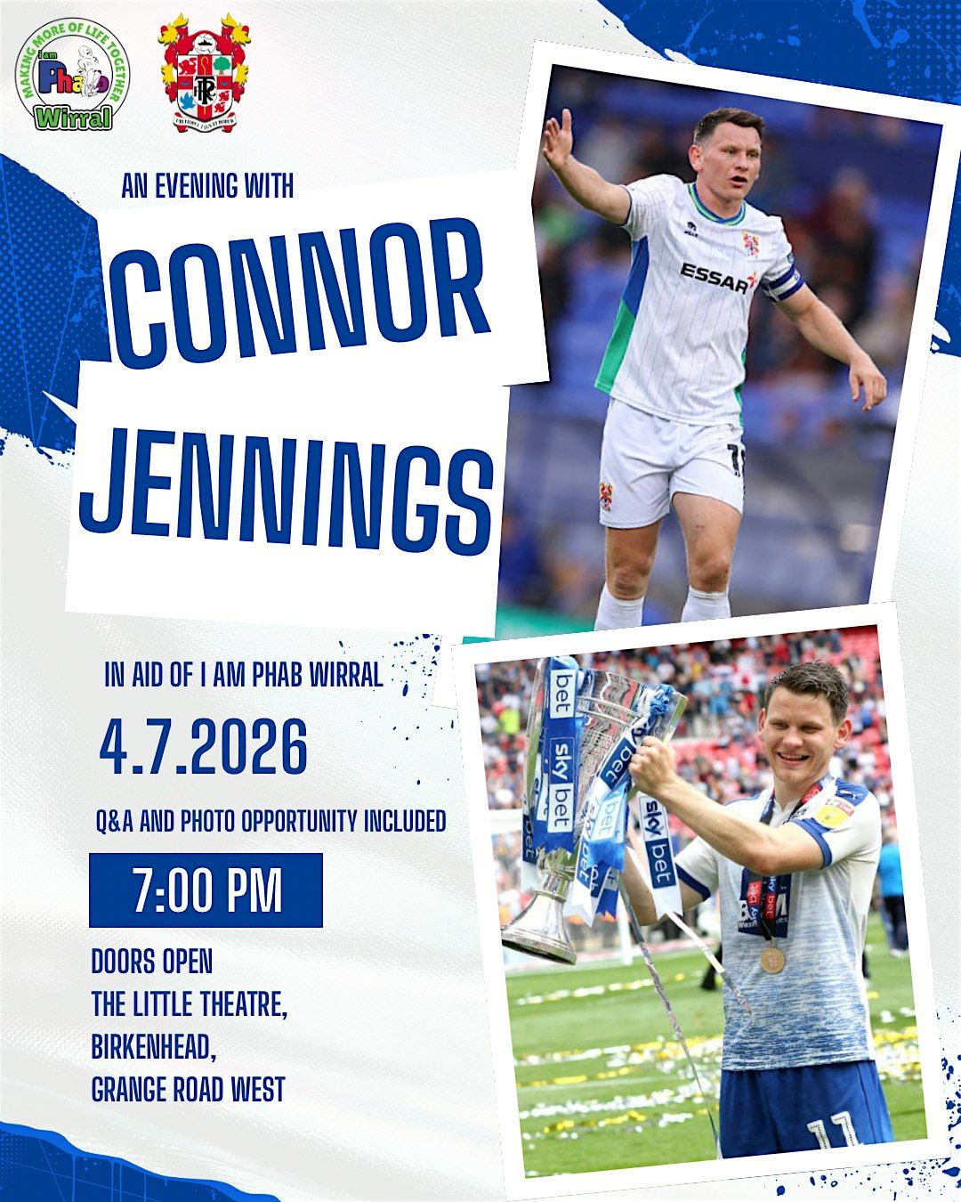 By popular demand!! Join us for a second night as we look back at the career of a living legend of Rovers, Connor Jennings, hosted by Rovers TVs, Adam Siddorn at The Little Theatre, Birkenhead.