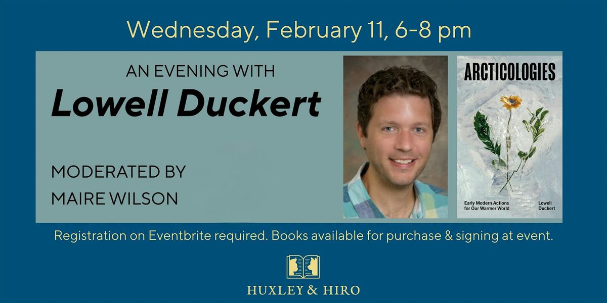 Huxley & Hiro is thrilled to host Dr. Lowell Duckert, Associate Professor of English at The University of Delaware, for a conversation about his latest scholarly publication, Arcticologies. Moderated by Maire Wilson, it promises to be an evening of chilly insights and freezing inspiration!