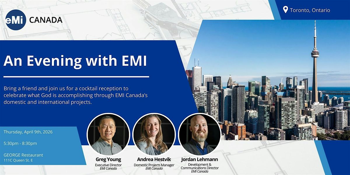 Bring a friend and join us for a cocktail reception to celebrate what God is accomplishing through EMI Canada's domestic and international projects.