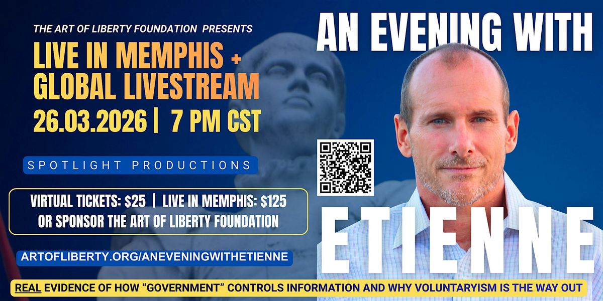 Join Etienne de la Boetie², founder of the Art of Liberty Foundation and author of Government – The Biggest Scam in History… Exposed!, for a live, two-hour presentation in Memphis—streamed globally.
