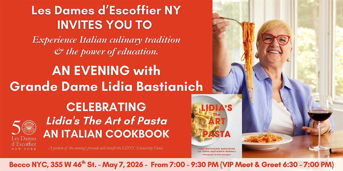 The evening will feature renowned chef and author Lidia Bastianich for a beautifully curated four-course dinner inspired by recipes from Lidia's The Art of Pasta: An Italian Cookbook. Guests will enjoy an unforgettable dining experience that brings the flavors and traditions of Italy to life.