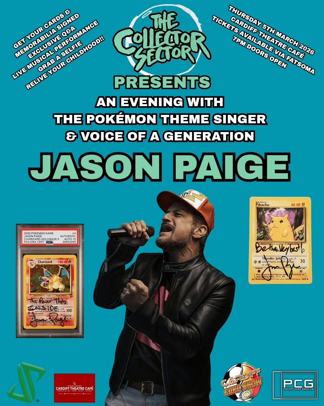 I'm very pleased to announce that the absolute ICON, Jason Paige, the original Pokémon theme song singer and voice of a generation will be coming to Cardiff Theatre Café on Thursday 5th March for an evening of total nostalgia! A super unique and exclusive event where you can get your cards & memorabilia signed, ask Jason questions, grab a selfie, and witness an up close and personal musical performance from the most iconic voice from the Pokémon universe!! Tickets are available via Fatsoma, there's limited numbers so order yours ASAP!!!!! 💙🩵💙🩵💙🩵
