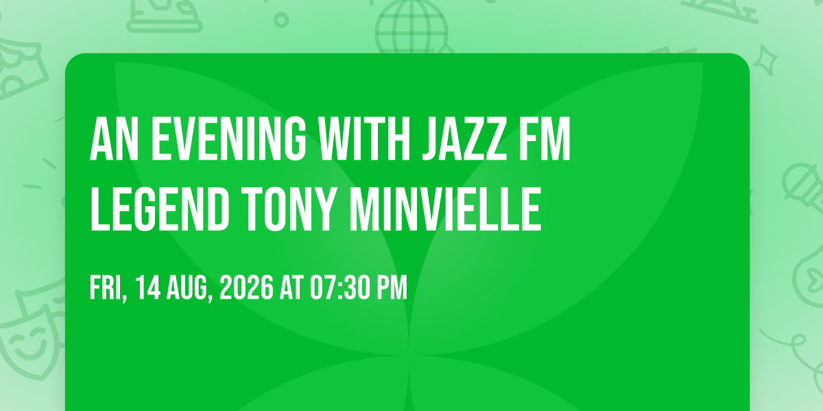 An evening with Jazz FM legend Tony Minvielle and surprise guests will feature live jazz music interspersed with stories of Tony's life and career. This will be a magical and inspiring event, one not to be missed!!