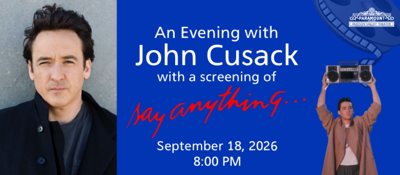 Spend an unforgettable evening with John Cusack at Paramount Hudson Valley Theater on September 18 for a special screening of the beloved classic Say Anything, followed by a live audience Q&A with the star himself. Relive the romance, humor, and iconic moments—including the legendary boombox serenade—that helped define a generation, then hear firsthand stories and reflections from Cusack about the film and his remarkable career. Cusack first captured audiences’ hearts with Say Anything and other ’80s favorites before going on to become one of Hollywood’s most versatile actors, earning acclaim for standout performances in films like High Fidelity, Being John Malkovich, Grosse Pointe Blank, and Love & Mercy. Over a career spanning more than three decades, he has seamlessly moved between comedy, drama, and thrillers, building a body of work that continues to resonate with audiences around the world. Limited VIP tickets that include a post-show Meet & Greet with John Cusack are available. Don’t miss this rare opportunity to experience a beloved classic on the big screen and spend an evening with one of its most iconic stars!