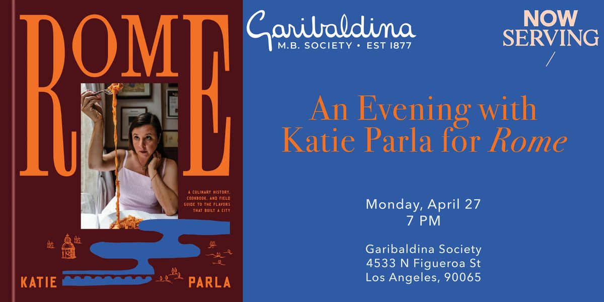 Now Serving and Garibaldina Society; America’s Oldest, Active Italian Cultural Society EST. 1877, invite you to an evening with Katie Parla to celebrate her newest book: Rome: A Culinary History, Cookbook, and Field Guide to the Flavors that Built a City. The evening will include Rome-inspired Antipasti/Aperitivo bites from the members of the Garibaldina and an author conversation with Katie Parla. Book signing to follow.