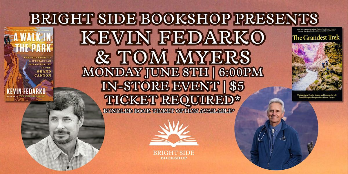 Join us for an evening with Kevin Fedarko and Tom Myers. The event will begin at 6:00 PM with a conversation, followed by a Q&A and book signing at 7:00 PM.
